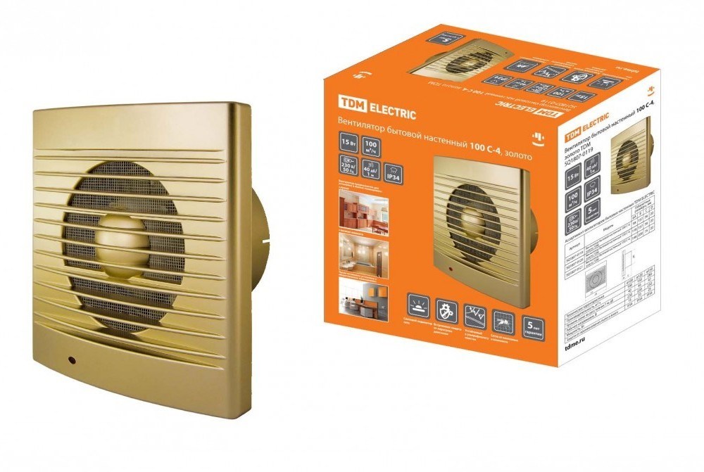TDM Вентилятор бытовой настенный 100 С-4, золото SQ1807-0119