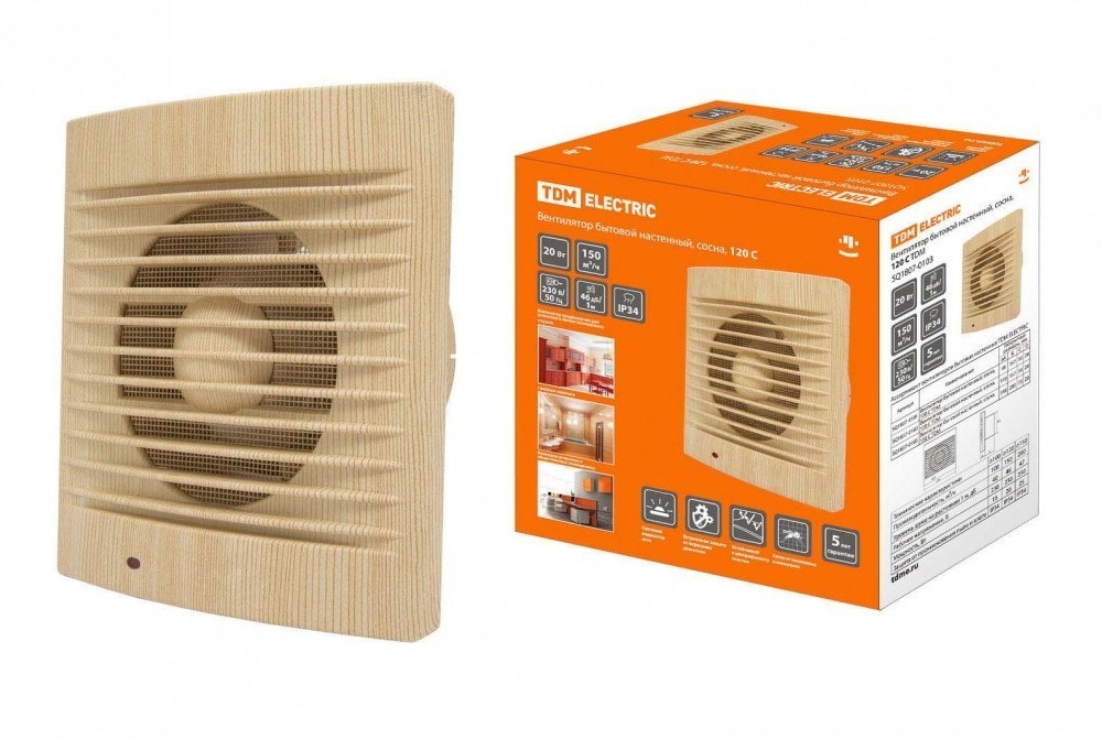 TDM Вентилятор бытовой настенный, 120 С ЭКО" (сосна)" SQ1807-0103