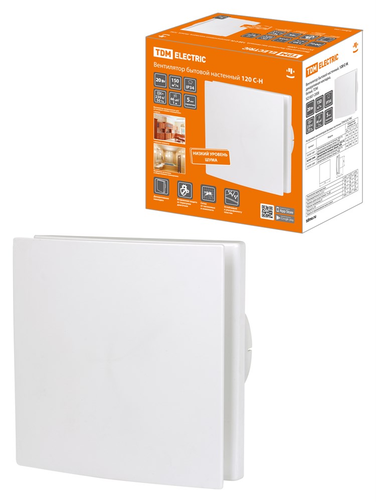 TDM Вентилятор бытовой настенный, 120 С-Н, декоративная накладка, белый, SQ1807-2008