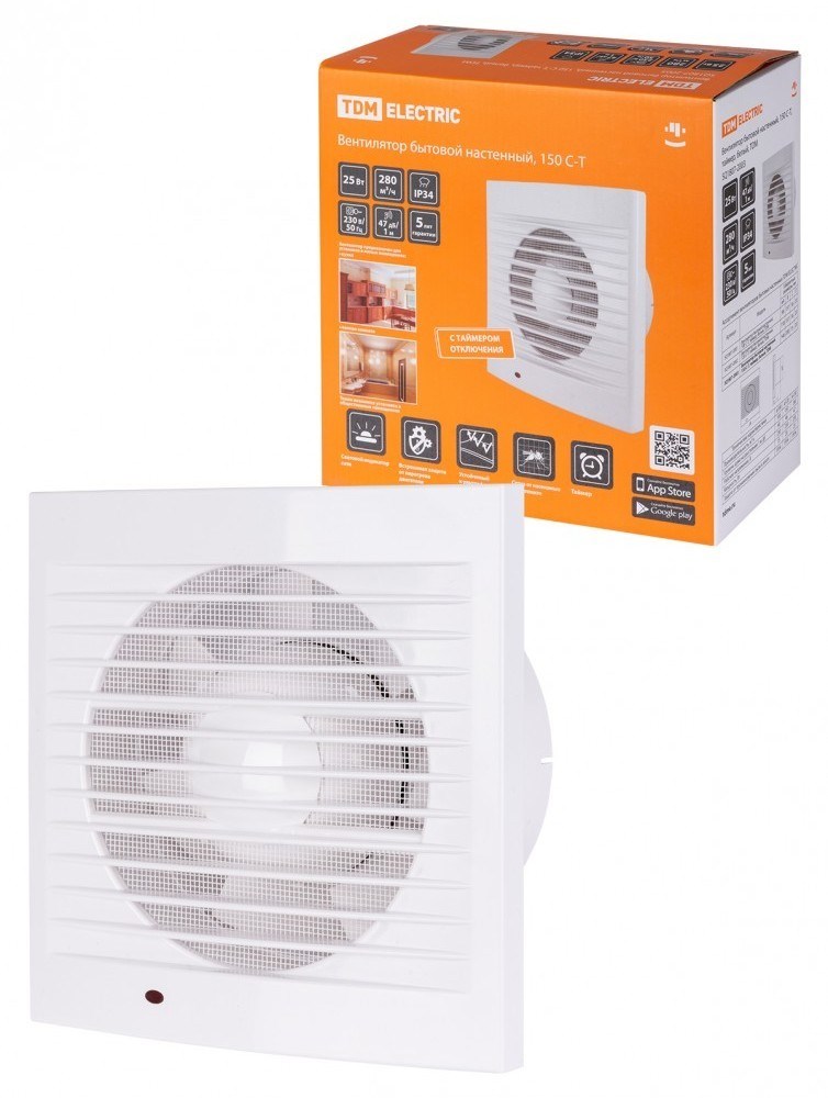 TDM Вентилятор бытовой настенный, 150 С-Т, таймер, белый, SQ1807-2003