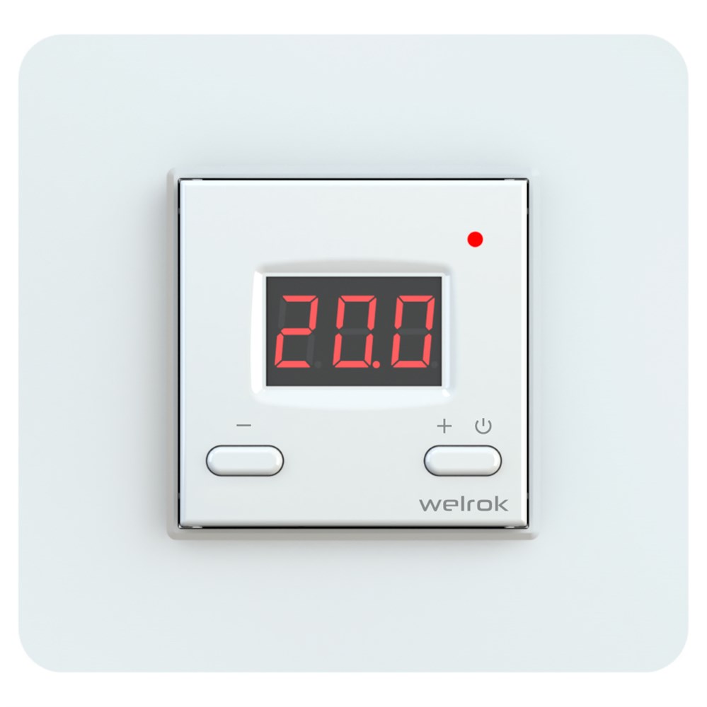 Широкое применение Welrok st - цифровой терморегулятор для управления электрическим и водяным теплым полом. Управление водяными теплыми полами осуществляется с помощью нормально закрытого электротермического сервопривода с рабочим напряжением 230 В. Термостат Welrok st поддерживает постоянную заданную температуру в диапазоне от 5 до 40 градусов Цельсия. Измерение температуры обеспечивает выносной датчик, который идет в комплекте с устройством. Комфорт эксплуатации Настройка температуры и навигация по меню осуществляется двумя кнопками и отображается на цифровом экране. Яркость экрана автоматически снижается до 30 % в режиме ожидания для комфортного использования в ночное время и экономии электроэнергии. Устанавливается в стандартный подрозетник диаметром 60 мм. Надежность и безопасность Welrok st обладает функцией блокировки кнопок для безопасности и защитой от перегрева. Если температура внутри корпуса превысит 85°C, терморегулятор автоматически выключится. При снижении температуры до 80°C терморегулятор включится автоматически. Комплект 1. терморегулятор Welrok st 2. декоративная рамка 3. датчик температуры с проводом 3 метра 4. технический паспорт, инструкция по установке и эксплуатации, гарантийный талон 5. упаковочная коробка